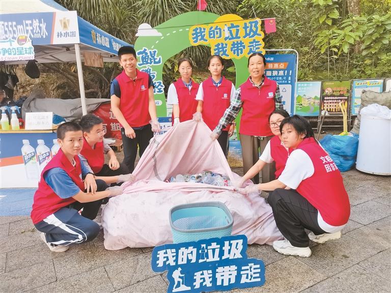 記者了解到,國慶中秋長假,深圳全市各區(qū)持續(xù)開展“山海撿塑 綠美鯤鵬”系列宣傳活動,在鯤鵬徑沿線登山出入口處設置了20余個志愿服務實踐點。身穿紅馬甲的志愿者駐守“山海撿塑”志愿服務實踐點,為市民發(fā)放“我的垃圾我?guī)ё摺崩龑忻駞⑴c“撿塑換享”“空瓶換水”等互動活動。據統(tǒng)計,10月1日至8日,全市各區(qū)累計發(fā)動超3萬人次參與活動,回收空瓶近10萬個,兌換礦泉水及其他環(huán)保禮品超1萬份,以實際行動踐行“我的垃圾我?guī)ё摺杯h(huán)保理念。