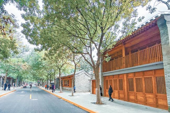 10月16日上午,秋意濃重,記者來到西興隆街西段,兩側(cè)高高的槐樹黃綠交織,掩映著成排的院落。與周邊的四合院群落相似,這些院落以傳統(tǒng)的青磚灰瓦、棕色門窗為主色調(diào),新添了落地玻璃等現(xiàn)代建筑元素,新舊交融,呈現(xiàn)出“復(fù)古中見時(shí)尚”的獨(dú)特氣質(zhì)。