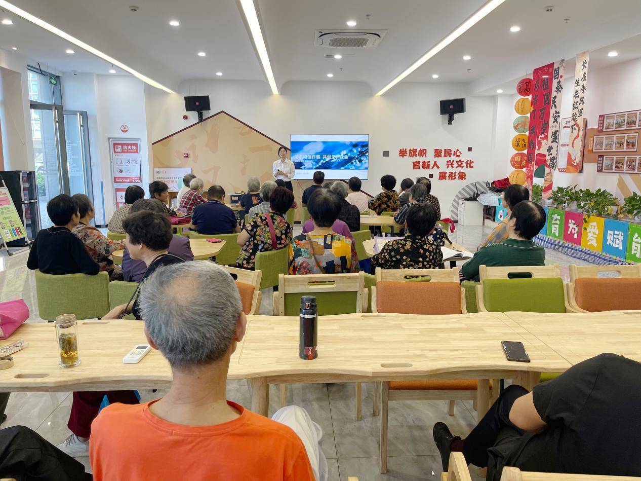 圖為慈溪市法院網(wǎng)格法官在滸西社區(qū)開(kāi)展“防范電信詐騙 共創(chuàng)無(wú)詐社會(huì)”法治宣講活動(dòng)