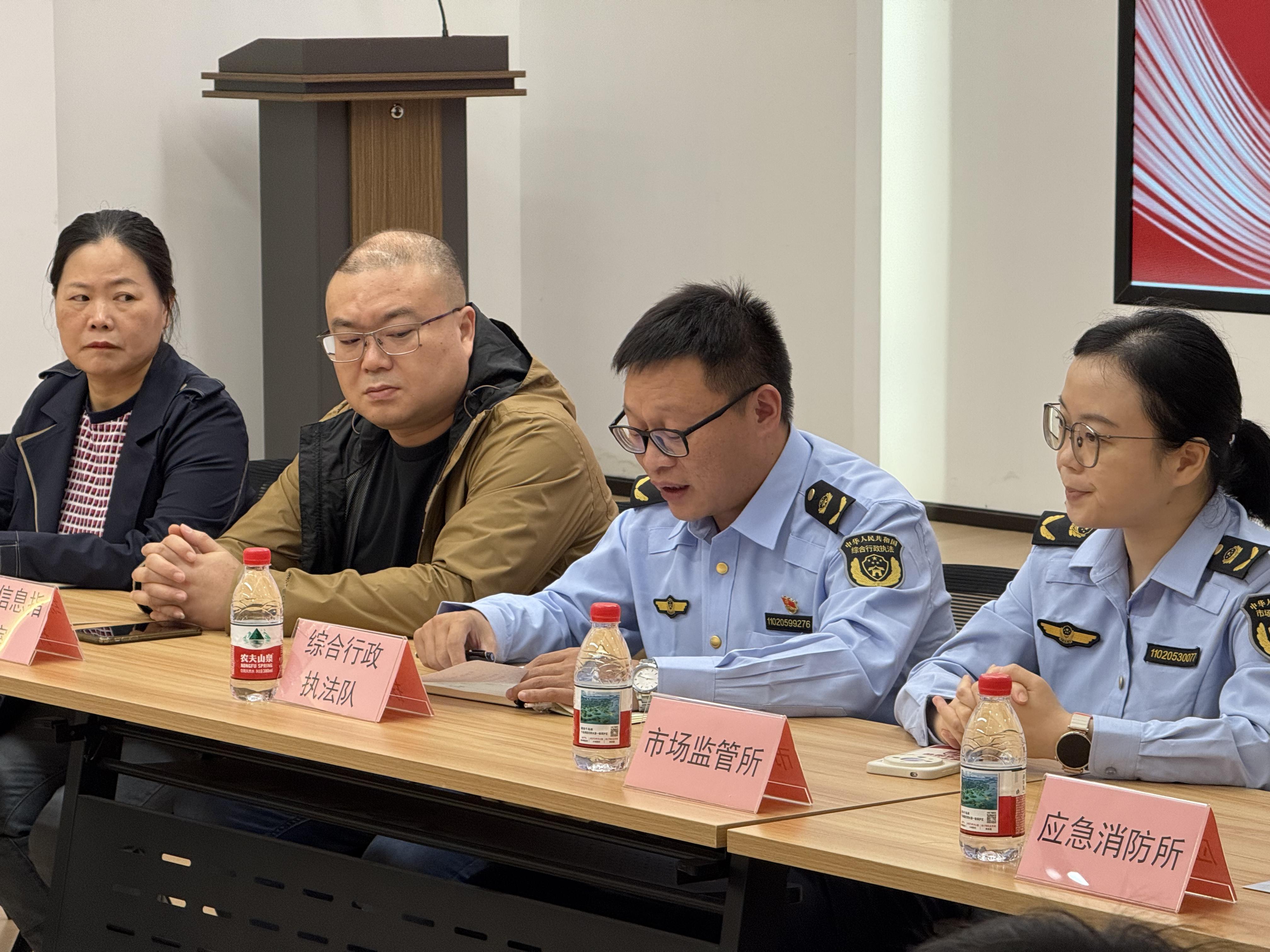 現(xiàn)場(chǎng),各參與部門也帶來(lái)了各自的“服務(wù)禮包”:市場(chǎng)監(jiān)管部門強(qiáng)調(diào)了食品安全主體責(zé)任與“陽(yáng)光廚房”建設(shè);應(yīng)急消防管理站開(kāi)展了警示教育并公布了本地消防專線;司法所則提供了便捷的公共法律服務(wù)指引……各部門希望通過(guò)協(xié)力服務(wù)、真誠(chéng)交流,共同構(gòu)建起“益企惠商”的優(yōu)良生態(tài)。