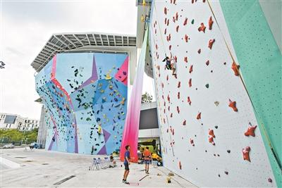 廣州大學(xué)城體育中心攀巖場是國內(nèi)首批零碳體育場館改造項目。記者 莊小龍攝
