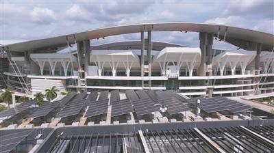 廣東省奧體中心及周邊的建筑均安裝上了光伏板進(jìn)行綠色發(fā)電。記者 駱昌威攝