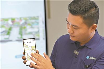 工作人員演示“全運(yùn)廣州”小程序的“AR導(dǎo)航”功能。記者 王維宣攝