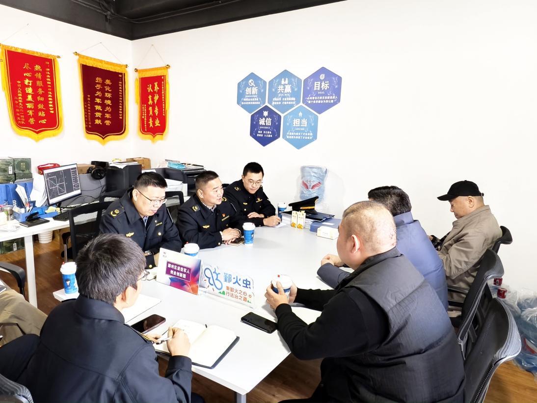 圖為執(zhí)法人員與企業(yè)進行交流