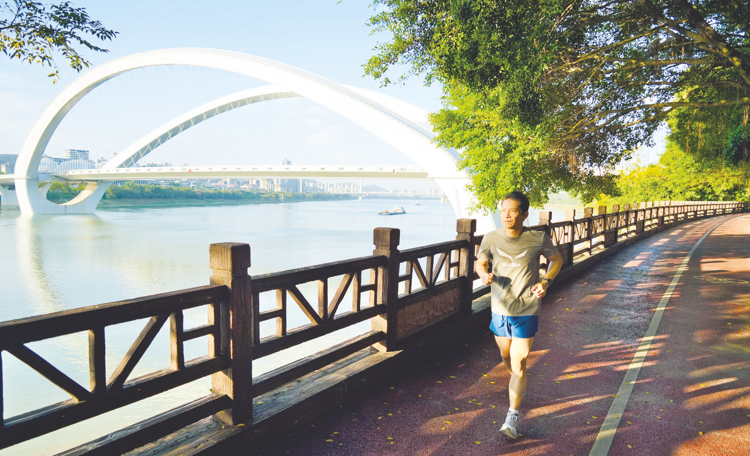 市民在秀美邕江畔晨跑。記者 宋延康 攝