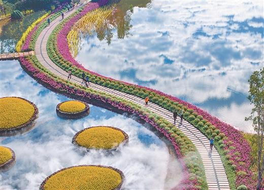 11月23日,游客在南寧青秀山風景區(qū)丘石花園里游玩賞花,樂享冬日浪漫時光。曾祥忠/攝