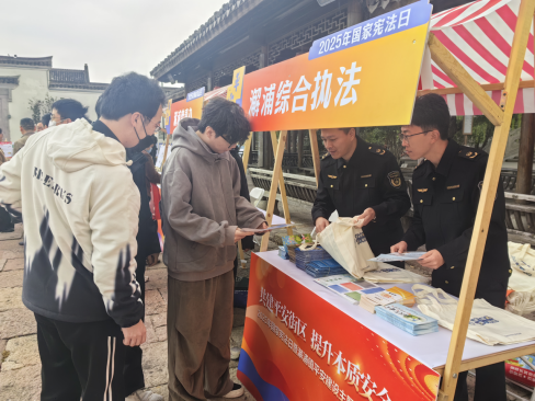 為進(jìn)一步凝聚執(zhí)法合力,活動(dòng)現(xiàn)場還舉行了執(zhí)法聯(lián)盟授旗儀式。澥浦鎮(zhèn)相關(guān)負(fù)責(zé)人為綜合行政執(zhí)法隊(duì)授予“執(zhí)法聯(lián)盟”旗幟,標(biāo)志著鎮(zhèn)綜合行政執(zhí)法隊(duì)將聯(lián)合市場監(jiān)管、派出所等部門,構(gòu)建“聯(lián)動(dòng)執(zhí)法、協(xié)同普法”的工作新格局。此外,歌曲演唱、法治知識(shí)問答等互動(dòng)環(huán)節(jié)輪番上演,現(xiàn)場群眾積極參與,在輕松愉悅的氛圍中加深了對法律法規(guī)的理解。