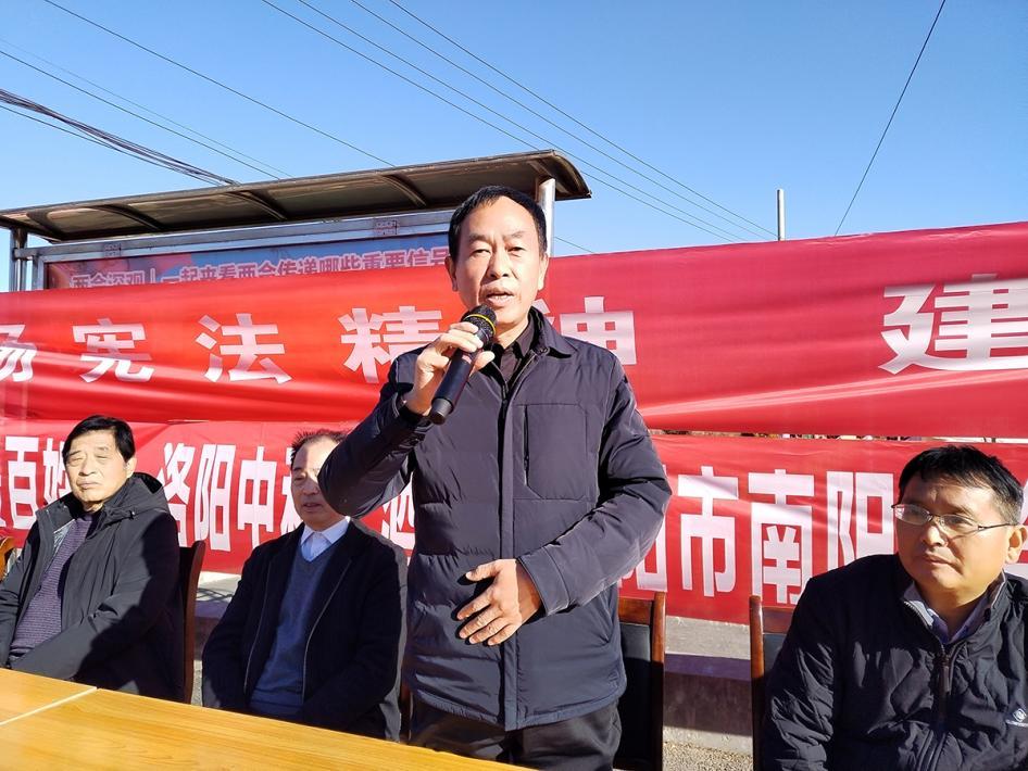 初冬暖陽(yáng)明媚,河南省洛陽(yáng)市伊川縣水寨鎮(zhèn)司馬溝村村委會(huì)門前的空?qǐng)龅厣?,村民們的笑容與陽(yáng)光相映生輝。12月3日,在我國(guó)第十二個(gè)國(guó)家憲法日到來(lái)之際,洛陽(yáng)市南陽(yáng)商會(huì)及律師志愿者團(tuán)隊(duì)一行30余人,走進(jìn)這座底蘊(yùn)深厚的傳統(tǒng)村落,開(kāi)展普法宣傳,為老人送上暖心蘋果,讓法治溫度與敬老溫情在鄉(xiāng)村暖心守護(hù)。