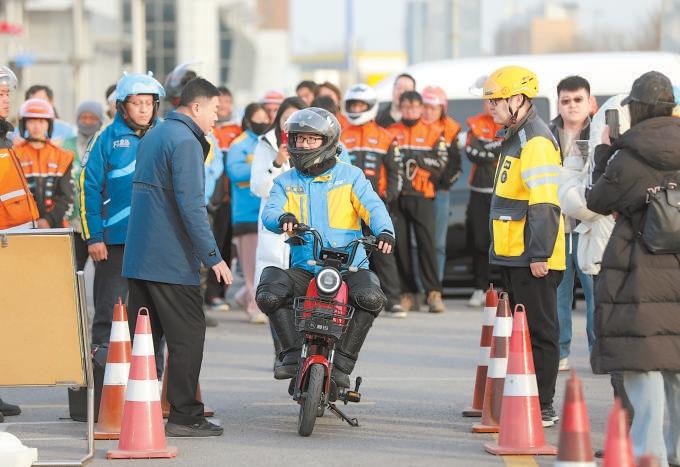強(qiáng)制佩戴頭盔、騎行時(shí)不得瀏覽手機(jī)、禁止非法拼改加裝……室內(nèi)培訓(xùn)課堂在現(xiàn)場互動(dòng)問答中進(jìn)行。新修訂的《北京市非機(jī)動(dòng)車管理?xiàng)l例》將于明年5月1日正式實(shí)施;同時(shí),電動(dòng)自行車新國標(biāo)《電動(dòng)自行車安全技術(shù)規(guī)范》也已于今年9月1日落地施行。培訓(xùn)體驗(yàn)中,來自市交通安全宣傳教育基地的講師圍繞兩項(xiàng)新規(guī),向相關(guān)從業(yè)人員深入淺出地講解佩戴安全頭盔、不闖紅燈、不逆行等安全出行規(guī)范;交警則通過剖析交通事故典型案例以案說法,揭示交通違法的潛在危害,強(qiáng)化從業(yè)人員守法意識(shí)。