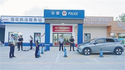 萬寧蓮花服務(wù)區(qū)執(zhí)法服務(wù)站實行多警種聯(lián)合執(zhí)勤。