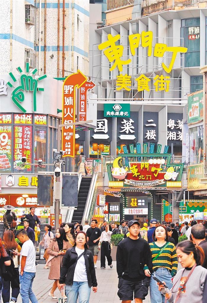 11月18日,東門(mén)老街內(nèi)的東門(mén)町美食城人流如織。