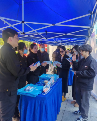 圖為執(zhí)法人員在商圈為商戶和市民開展普法宣傳