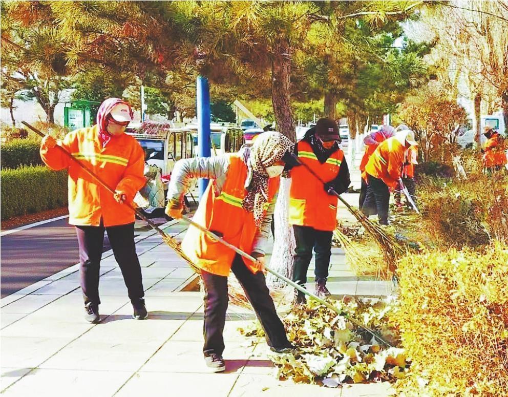 秋冬時節(jié)落葉堆積,喀左縣環(huán)衛(wèi)工人加緊清理,維護市容市貌。 賀培培 攝