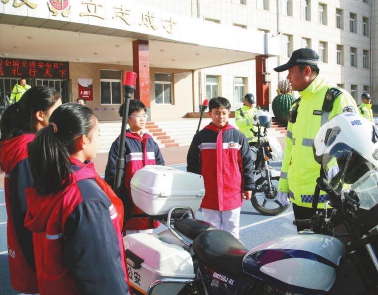 喀左縣公安局交管大隊工作人員為學生講解交通安全知識。 邰闖 攝