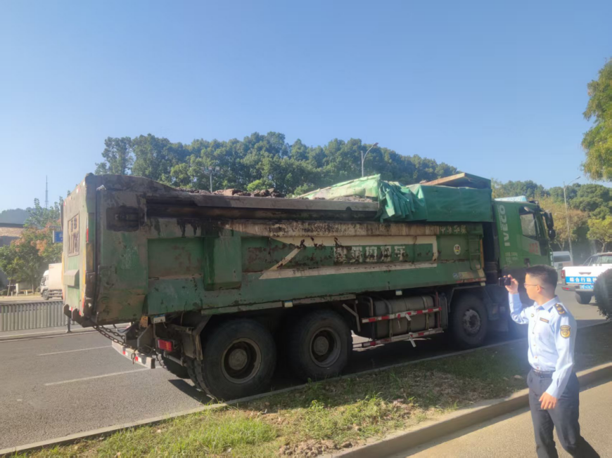 上午9時許,一輛重型自卸貨車在滸山街道西二環(huán)路右轉彎拐入慈甬路,行駛至慈甬路與西二環(huán)路交叉口往西200米處時被執(zhí)法人員叫停檢查。經檢查,該車滿載建筑垃圾,數量約為20立方米,主要成分為渣土。該車車載裝置設備開啟,相關平臺能顯示車輛行駛軌跡,但未發(fā)現電子轉移聯單登記。