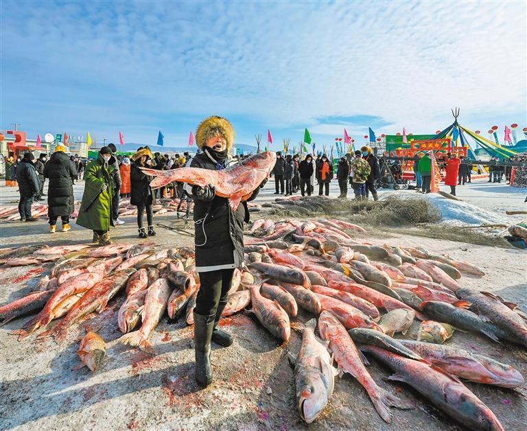 2023年2月16日拍攝的“鏡泊湖冬捕節(jié)”現(xiàn)場。當(dāng)?shù)匕讯都净顒?dòng)打造成推動(dòng)冰雪旅游發(fā)展的重要品牌。 唐偉東攝(中經(jīng)視覺)