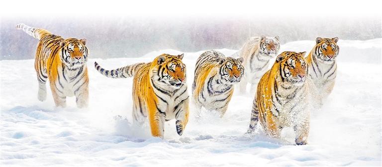 2021年12月23日,牡丹江市海林市橫道河子?xùn)|北虎林園,老虎們?cè)谘┑厣湘音[。橫道河子?xùn)|北虎林園是世界最大的東北虎人工繁育基地,在東北虎種群保護(hù)、野化訓(xùn)練等方面發(fā)揮了重要作用。趙日偉攝(中經(jīng)視覺)
