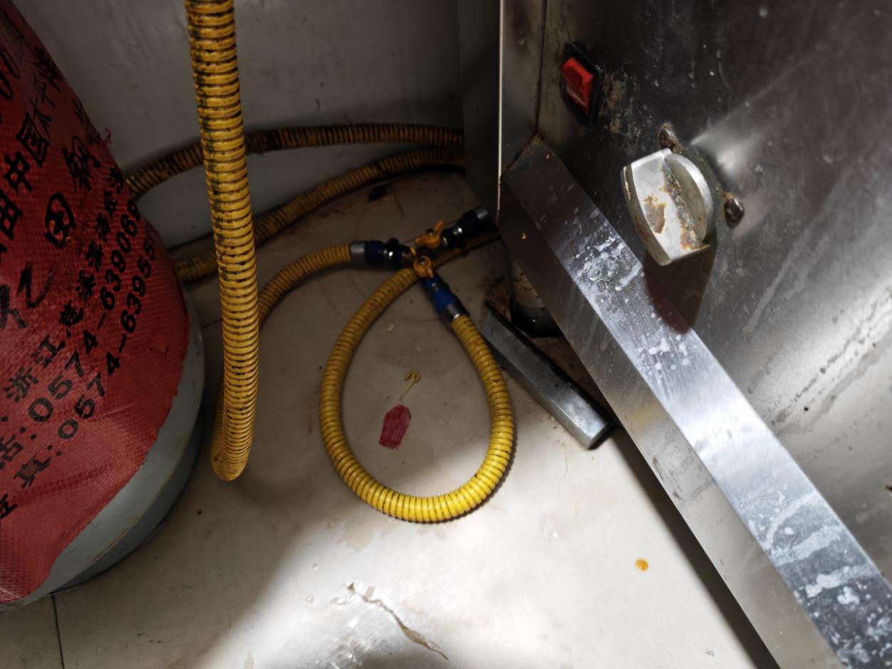 檢查中發(fā)現(xiàn),仍有餐飲經(jīng)營者違規(guī)使用非標(biāo)準(zhǔn)“三通”接頭。該類接頭密封性能差、易老化松動,極易導(dǎo)致燃?xì)饩徛孤┎⒎e聚,成為引發(fā)爆燃事故的“隱形炸彈”。