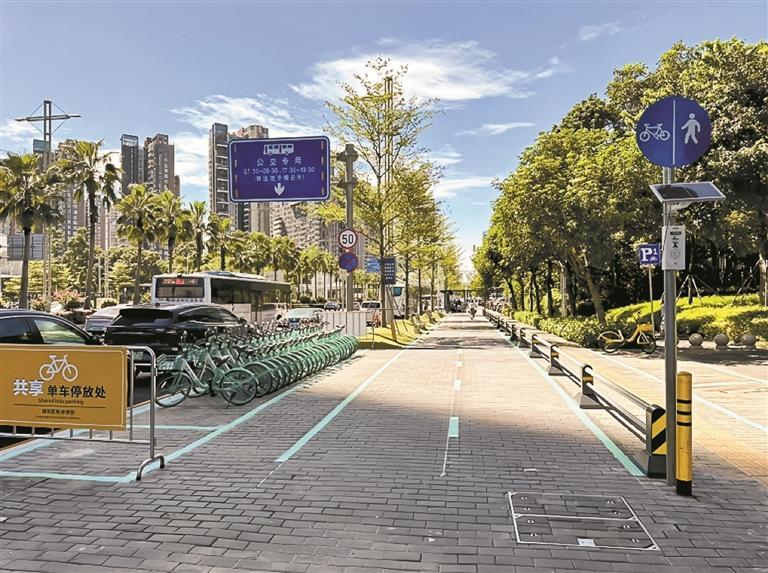 在深圳大悅城周邊,開業(yè)首日42萬人次的客流量曾讓這里陷入“甜蜜的煩惱”,車輛擁堵、人車混行。如今,這里已變身成為“暢行圖景”。通過“地毯式”排查,創(chuàng)前一路北巷等地方新增了超1500個非機動車停車位,并設(shè)置規(guī)范化停放引導(dǎo)牌、移動語音提示裝置等,潛移默化地引導(dǎo)市民養(yǎng)成良好的停車習(xí)慣。同時,實行人車分流硬隔離,劃分人行道和非機動車道,減少了交叉干擾。