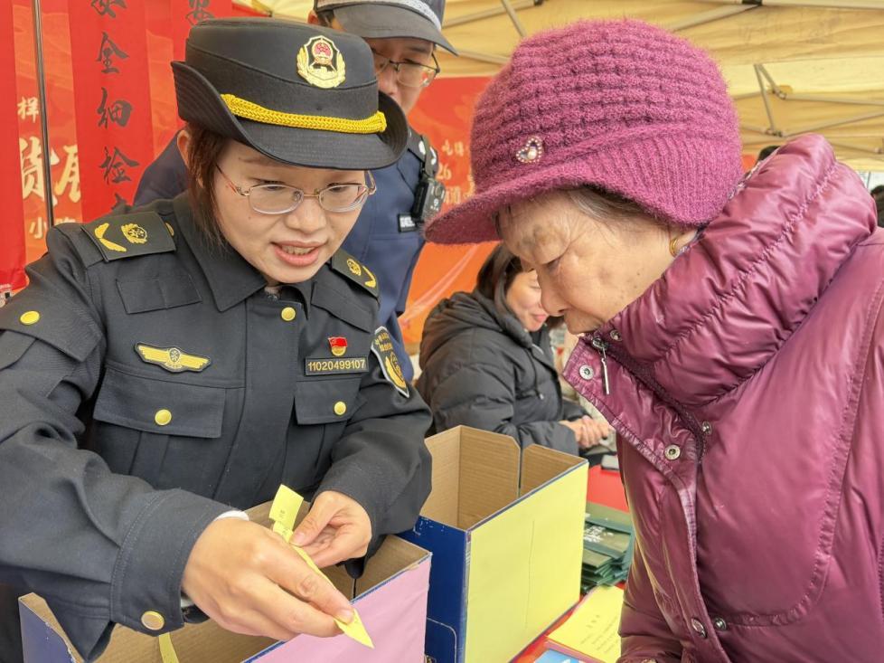 2月1日,柴橋影劇院廣場(chǎng)的年貨節(jié)人氣爆棚,海鮮、糕點(diǎn)、春聯(lián)等年味商品琳瑯滿目,柴橋中隊(duì)看準(zhǔn)這一“普法黃金窗口”,在集市設(shè)立宣傳展位,既不影響市民逛集采購的興致,又能讓普法宣傳精準(zhǔn)覆蓋各類人群。