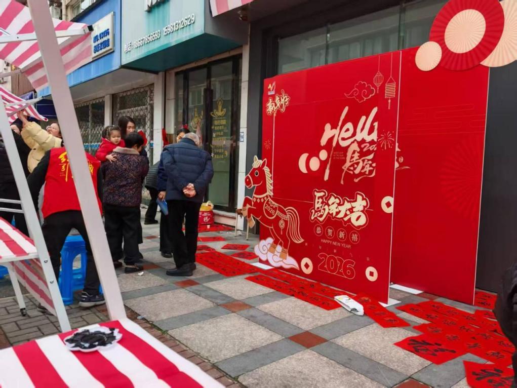 在新碶街道,執(zhí)法中隊(duì)聯(lián)合社區(qū)開展“翰墨傳情送祝福,執(zhí)法為民暖萬家”主題活動(dòng),活動(dòng)現(xiàn)場(chǎng)筆墨紙硯整齊排布,大紅春聯(lián)紙鋪滿桌面,隊(duì)員康亞平的身影格外顯眼,他鋪紙、蘸墨、揮毫,一系列動(dòng)作行云流水,筆下春聯(lián)遒勁有力、氣韻十足,引得群眾頻頻稱贊。平日里,他們是守護(hù)轄區(qū)市容市貌的“守護(hù)者”,穿梭在街巷之間,整治違規(guī)占道、規(guī)范經(jīng)營秩序、排查安全隱患,用嚴(yán)格執(zhí)法守護(hù)群眾生活環(huán)境;此刻,他們放下執(zhí)法記錄儀,凝神揮毫,一筆一畫皆是深情,一字一句飽含祝福,讓嚴(yán)肅的執(zhí)法形象變得可親。