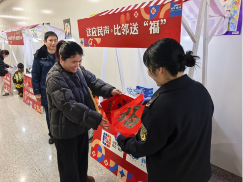 “平安燃情暖萬家,文明養(yǎng)犬睦鄰舍……”近日,在浙江省寧波市鄞州區(qū)下應街道海創(chuàng)社區(qū)寒松路地鐵站通道內(nèi),鄞州區(qū)綜合行政執(zhí)法局下應中隊開展了“法應民生,比鄰送?!逼辗ㄐ麄骰顒?。執(zhí)法隊隊員現(xiàn)場書寫法治新春對聯(lián)與福字贈予過往群眾,并向群眾開展普法宣傳,將法治寓意于民俗,將關懷送至群眾身邊。