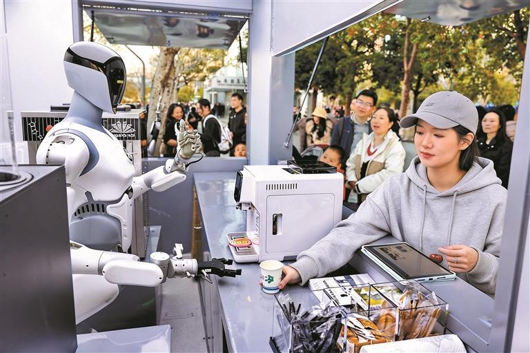 深圳人才公園的智平方機器人憑借靈活的機械臂現(xiàn)場為游客制作咖啡。深圳特區(qū)報記者 周紅聲 潘康 曹鵬飛 攝