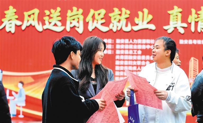 2月25日,廣西壯族自治區(qū)柳州市融安縣長安廣場(chǎng),求職者在了解招聘崗位信息。覃慶和攝(中經(jīng)視覺)