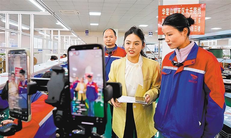 2月26日,四川省華鎣市組織網(wǎng)絡(luò)主播走進(jìn)企業(yè)生產(chǎn)車間,通過直播平臺(tái)向網(wǎng)絡(luò)求職者介紹企業(yè)情況。當(dāng)?shù)卮罱ㄆ髽I(yè)和求職者崗位對(duì)接平臺(tái),實(shí)現(xiàn)“崗位找人”與“人找崗位”雙向互動(dòng)。周松林?jǐn)z(中經(jīng)視覺)