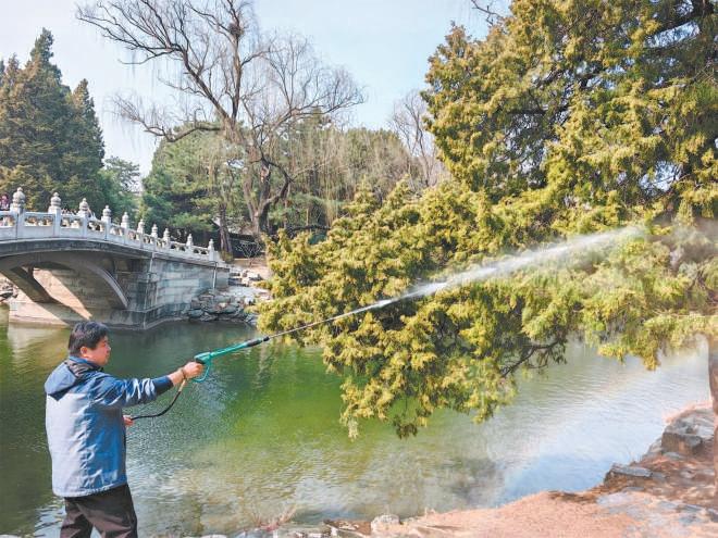 此外,市園林綠化局下發(fā)《北京市花粉防治技術(shù)手冊(cè)》,指導(dǎo)各區(qū)科學(xué)、精準(zhǔn)開展綜合防治工作。針對(duì)致敏花粉高發(fā)時(shí)段,全市各有林單位將綜合運(yùn)用“整形修剪、高壓噴水、地面濕化、噴灑固定劑、及時(shí)清掃”五項(xiàng)措施,對(duì)核心防控區(qū)、人流密集區(qū)、居民集中區(qū)、學(xué)校醫(yī)院等重點(diǎn)區(qū)域,加密作業(yè)頻次,最大限度降低空氣中致敏花粉濃度。