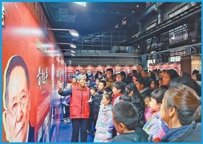 遼寧省沈陽市中國(沈陽)工業(yè)博物館,志愿者在為參觀學生及市民游客講解科學家生平和科技知識。該博物館由沈陽鑄造廠翻砂車間改造而來。王榮巍攝(人民視覺)