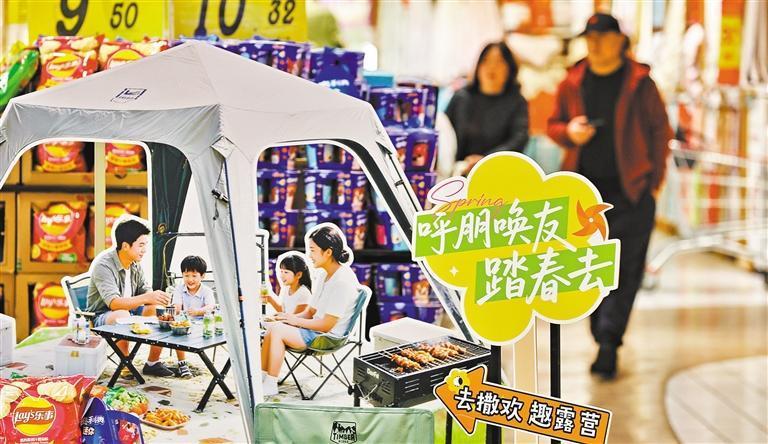 3月14日,浙江省嘉興市南湖區(qū)一大型商超,消費(fèi)者在選購(gòu)露營(yíng)商品。金鵬 攝(中經(jīng)視覺(jué))
