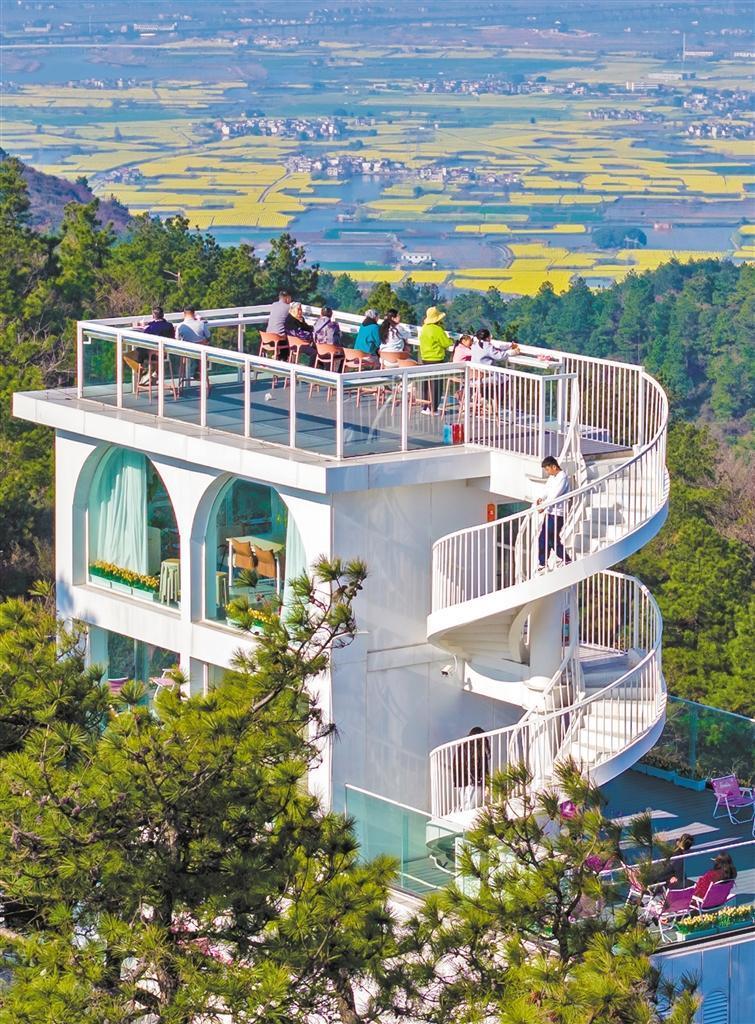 3月13日,安徽省蕪湖市峨橋鎮(zhèn),游客在一家山頂咖啡館欣賞油菜花田美景。當(dāng)?shù)赝ㄟ^(guò)“生態(tài)+消費(fèi)+體驗(yàn)”模式,將自然風(fēng)光轉(zhuǎn)化為文旅消費(fèi)動(dòng)能。肖本祥 攝(中經(jīng)視覺(jué))