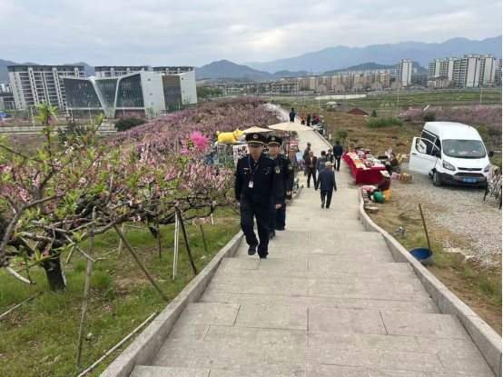 三月春風暖,桃花次第開。3月20日至4月6日,浙江省寧波市奉化區(qū)蕭王廟街道桃花節(jié)如約而至,漫山花海迎來八方游客。為營造安全、有序、文明的賞花環(huán)境,蕭王廟綜合行政執(zhí)法隊全員上陣、精準發(fā)力,圍繞燃氣安全、攤販管理、應急處置等重點環(huán)節(jié),以扎實舉措織密保障網(wǎng)絡,用實際行動為桃花節(jié)保駕護航。