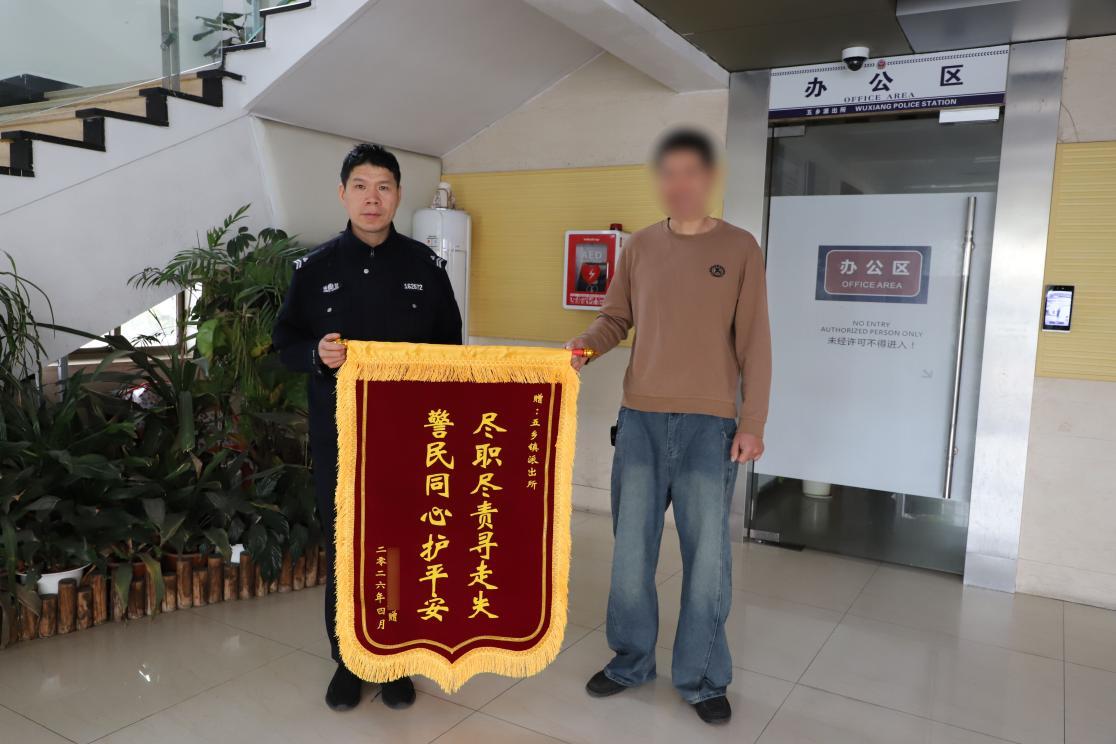 4月7日上午,浙江省余姚市一名群眾專程趕到寧波市公安局鄞州區(qū)分局五鄉(xiāng)派出所,送來一面印有“盡職盡責(zé)尋走失,警民同心護(hù)平安”字樣的錦旗,感謝民輔警暖心助力尋回走失老人。