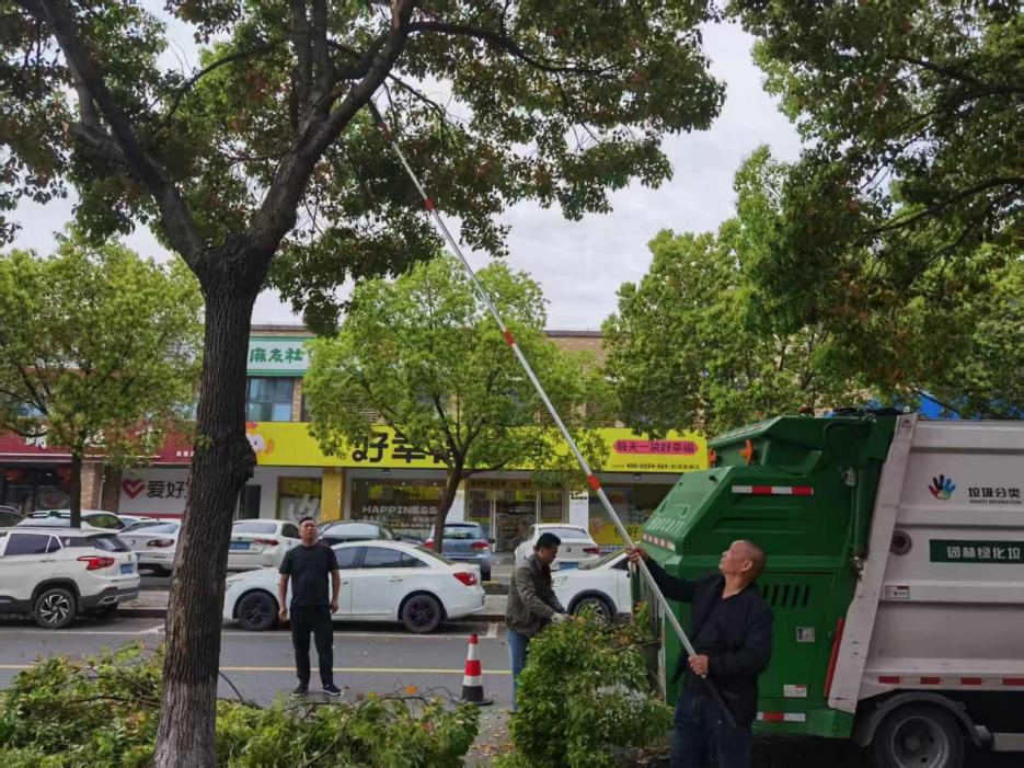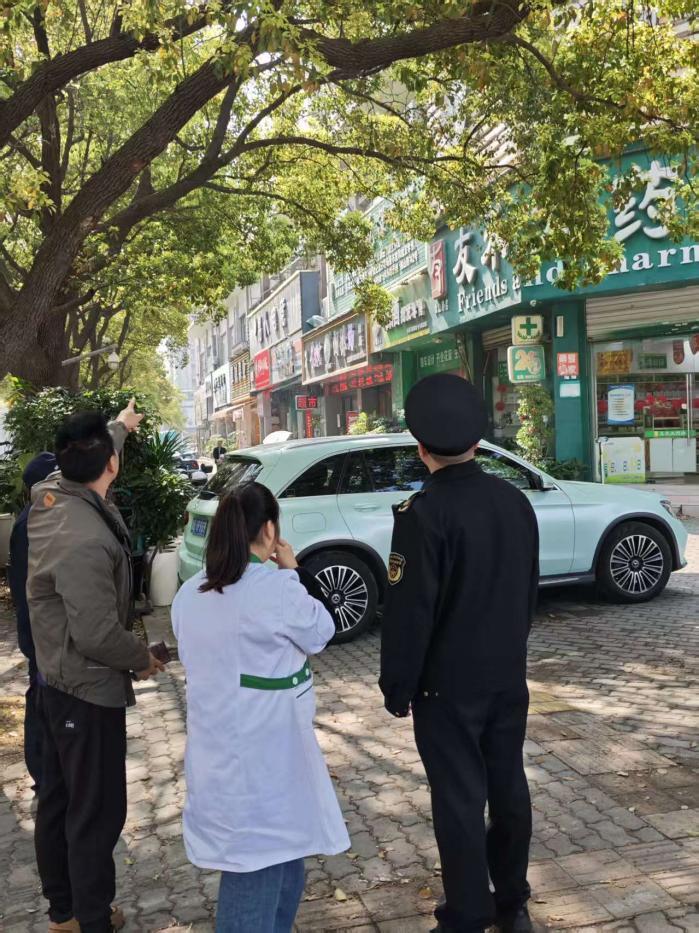 4月7日,執(zhí)法中隊迅速與園林綠化部門取得聯(lián)系,組建專項工作小組,一同前往現(xiàn)場勘查摸排。工作人員耐心傾聽商戶訴求,逐戶查看樹木生長情況,結(jié)合店鋪位置、招牌高度和樹木長勢,與商戶、園林綠化工作人員共同商議,精準確定修剪范圍和修剪方案——既要徹底解決枝葉遮擋招牌、影響采光的問題,又要最大限度保護樹木生長,避免過度修剪破壞城市綠化景觀,實現(xiàn)“助企便民”與“城市美化”的雙贏。同時,考慮到修剪作業(yè)可能影響周邊交通和行人安全,新碶街道執(zhí)法中隊提前規(guī)劃作業(yè)區(qū)域,安排執(zhí)法人員現(xiàn)場協(xié)調(diào)樹下停放車輛駛離,設置安全警示標識,維護現(xiàn)場秩序,確保修剪工作安全有序推進。