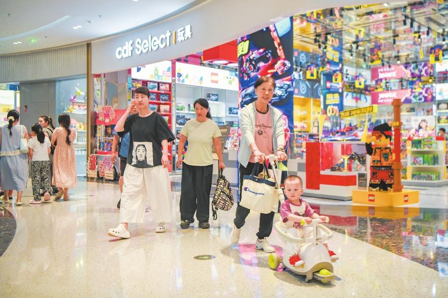 清明假期,??诟鞔竺舛惖昕土骷ぴ?、銷售火熱。圖為4月5日,在cdf海口國際免稅城,不少消費(fèi)者前來選購免稅商品。記者 蘇弼坤 攝