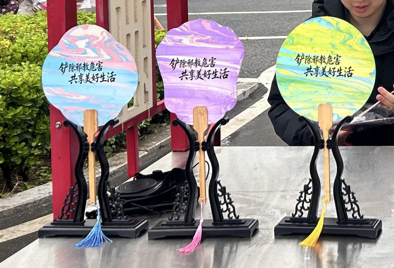 “反邪教漆扇體驗區(qū)”內(nèi),非遺漆扇技藝與反邪教宣傳巧妙融合。參與者通過滴漆、暈染等傳統(tǒng)工藝,讓扇面呈現(xiàn)出五彩斑斕,在感受傳統(tǒng)漆藝魅力的同時,也將反邪教意識深深印在心中。