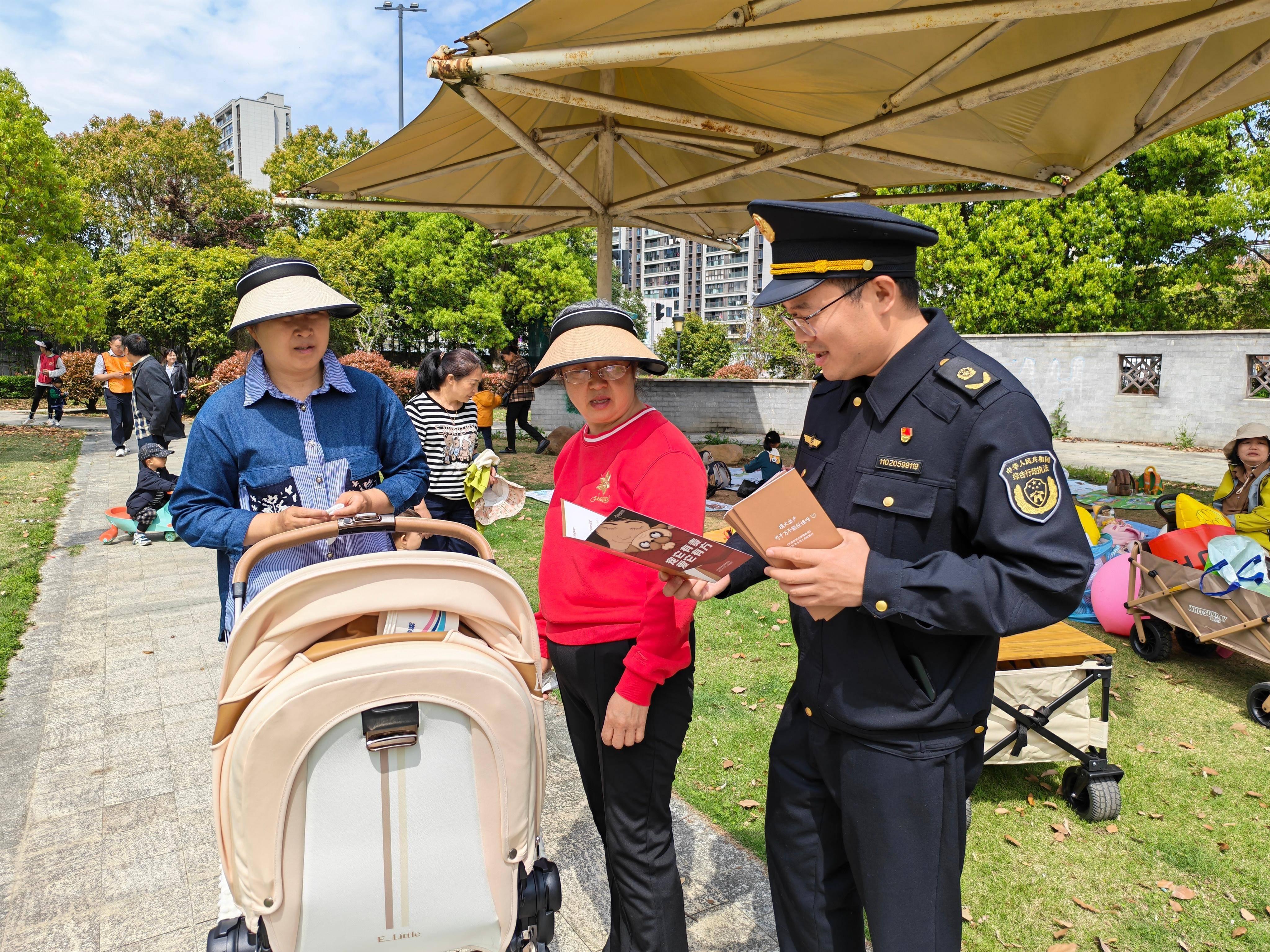 執(zhí)法人員在首南公園開展普法宣傳,為市民答疑解惑