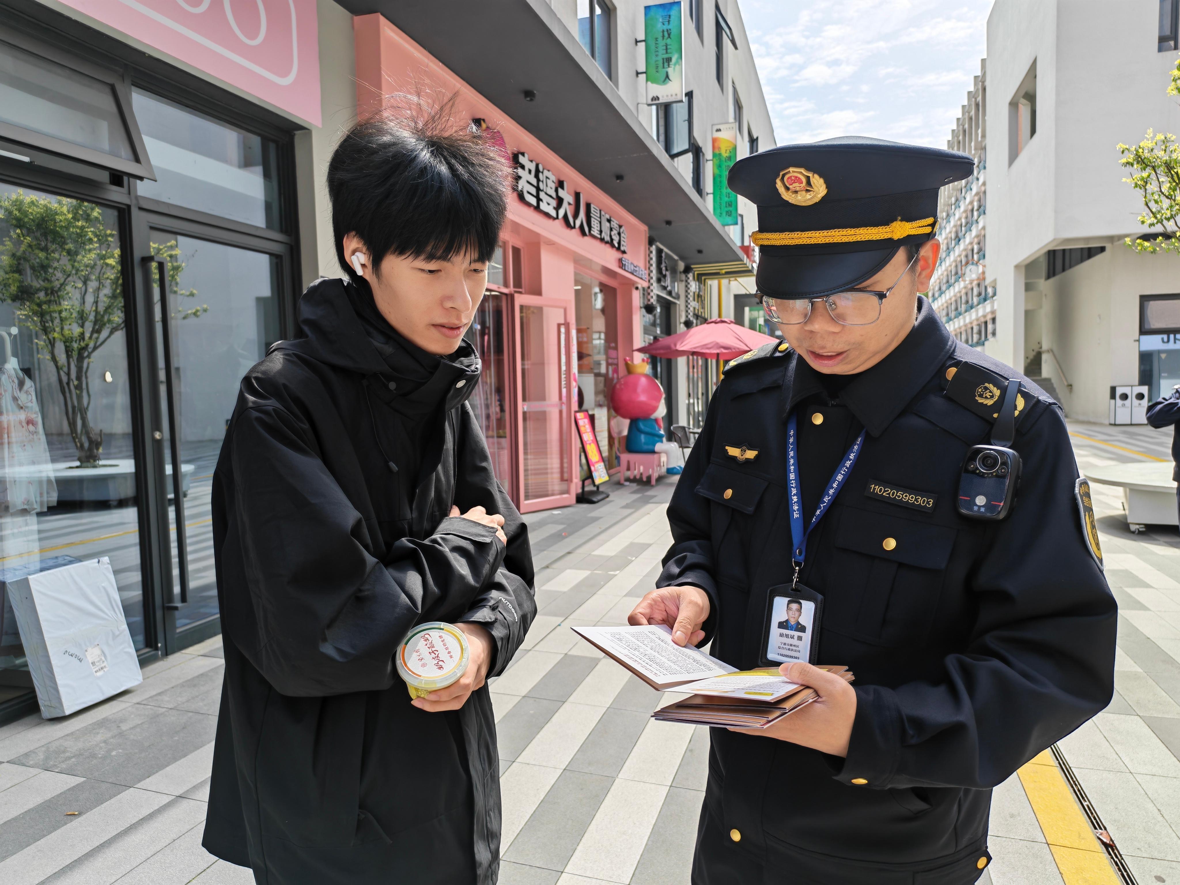 執(zhí)法人員在云創(chuàng)浙理商業(yè)街區(qū)開展文明養(yǎng)犬普法宣傳