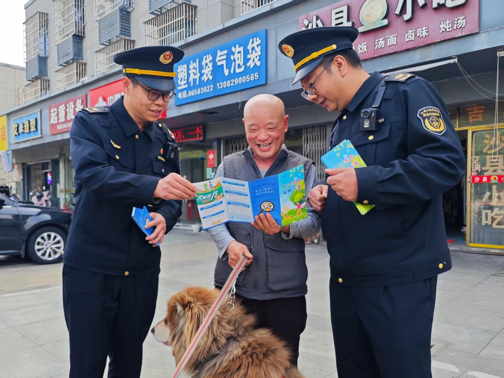 圖為執(zhí)法人員現場向市民宣傳《寧波市養(yǎng)犬管理條例》