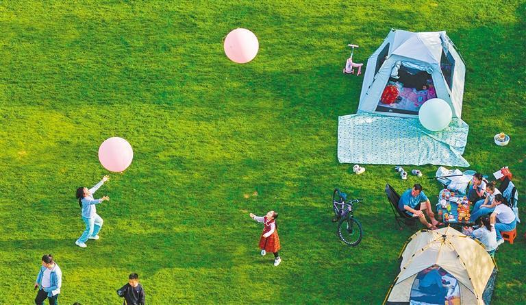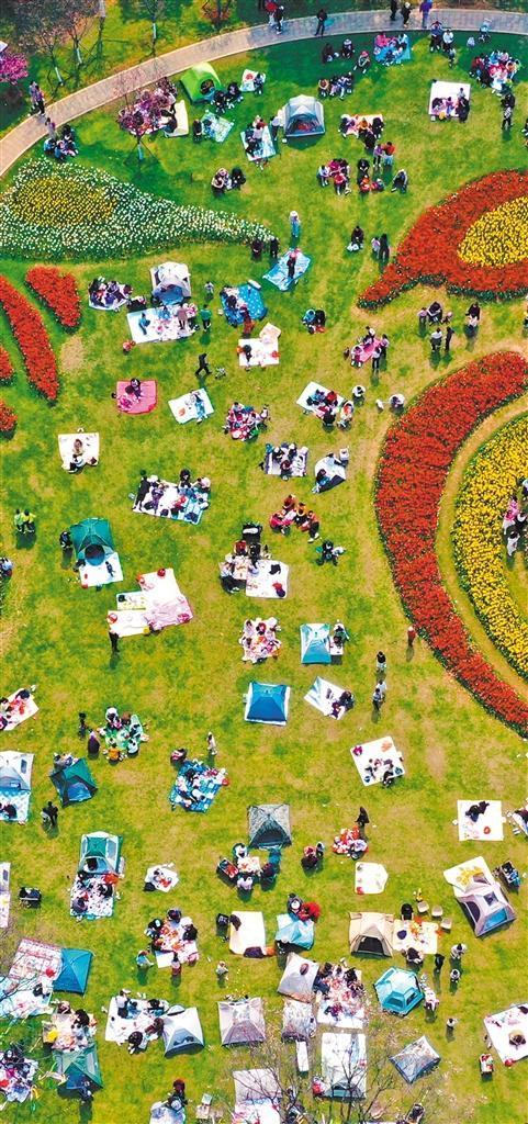4月4日,市民在湖北省黃石市黃石奧體公園休閑露營,享受春日美好時光。周巍 攝(中經(jīng)視覺)
