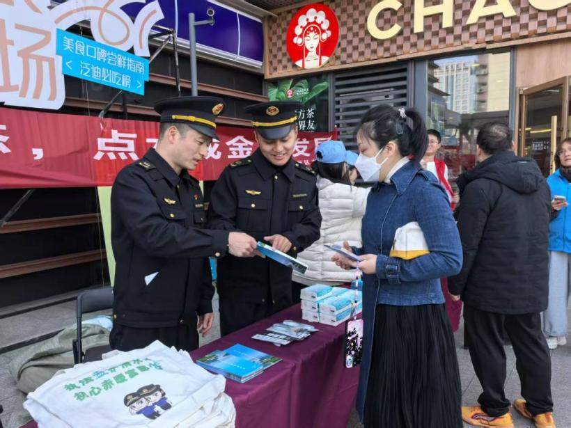 “阿姨,洗滌劑流進河里,河面上會不好看,魚兒也會‘皺眉’。”白鶴中隊執(zhí)法人員郭鵬飛一邊發(fā)放普法宣傳單,一邊用生動的語言向居民提醒保護水環(huán)境的重要性。該中隊堅持“宣傳先行,提示走心”,除在沿岸做好普法宣傳外,更在河埠頭醒目位置設(shè)置提示牌,提醒居民不可在景觀河內(nèi)洗滌、游泳。同時,在“世界水日”等重要時間節(jié)點,中隊走進泛迪中心,深入群眾開展普法工作,為其送上“護水普法”小禮物,讓護水意識充分浸潤到過往群眾心中。