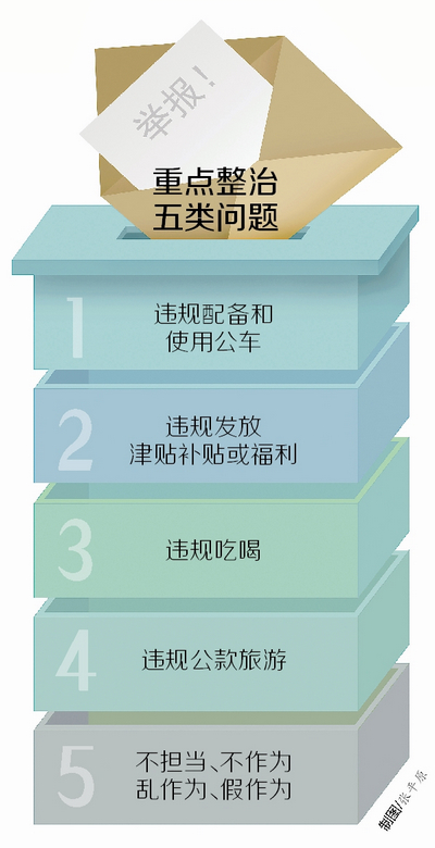 此次專項整治從“小切口”入手,聚焦違規(guī)配備和使用公車,違規(guī)發(fā)放津貼補貼或福利,違規(guī)吃喝,違規(guī)公款旅游,以及不擔當、不作為、亂作為、假作為等5類我市國有企業(yè)易發(fā)多發(fā)的共性問題。各國企將有針對性地開展“一企一清單”專項整治,根據(jù)本集團重點問題清單,對以上5類問題分別挑選最典型的表現(xiàn)作為整治切入點。