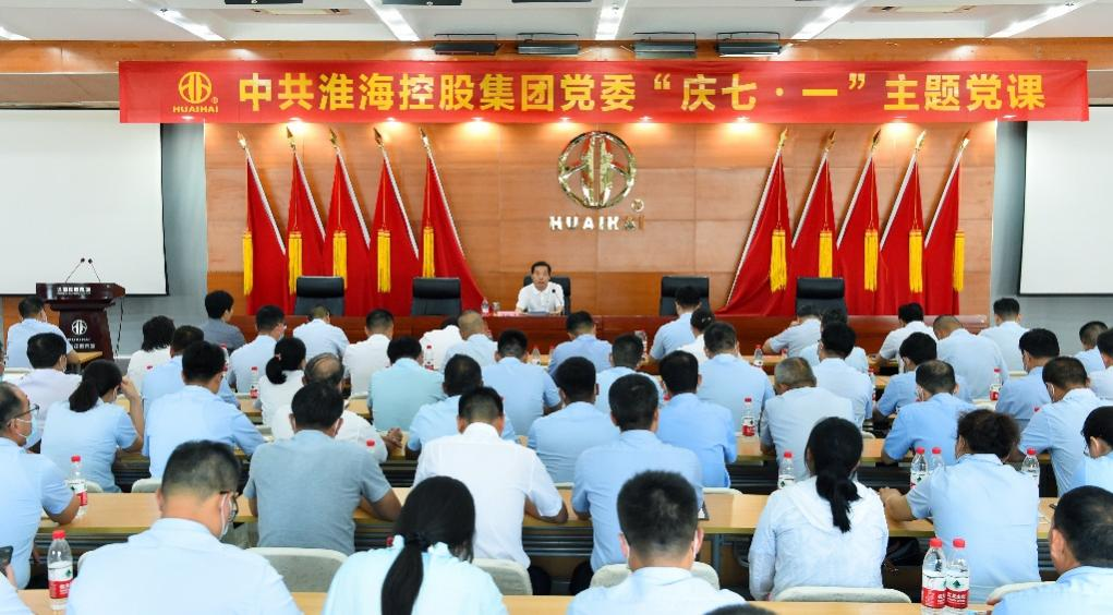 今年7月1日,是中國共產(chǎn)黨成立101周年。在淮??毓杉瘓F(以下簡稱淮海集團),鮮紅的黨旗和“我心永向黨”的海報隨處可見,醒目的“共產(chǎn)黨員示范崗”紅色卡片放置在每一個共產(chǎn)黨員的工位上。“黨旗飄在工位上”是集團黨建的一大特色,在集團生產(chǎn)一線,一塊標語牌格外引人注目——“黨建強,企業(yè)才更強”。