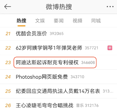 中國基金報消息,兩大運動品牌巨頭戰(zhàn)火升級!阿迪將耐克告上法庭!15日下午,“阿迪達斯起訴耐克專利侵權(quán)”登上熱搜。