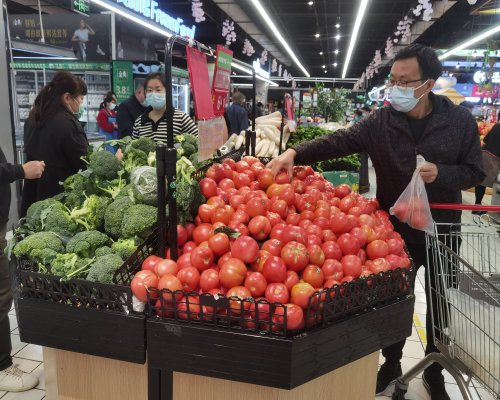 “目前,我們店肉菜蛋奶的庫存超過40噸,米面糧油的庫存超過50噸,供應充足、價格平穩(wěn)?!瘪R群新街店店長王志剛介紹,“為了給消費者創(chuàng)造更加安心的購物環(huán)境,消費者進場需要佩戴口罩、測溫、查看48小時核酸陰性證明和健康碼,門店確保每天消毒、通風。尤其是扶梯、購物車等公共區(qū)域和物品。”