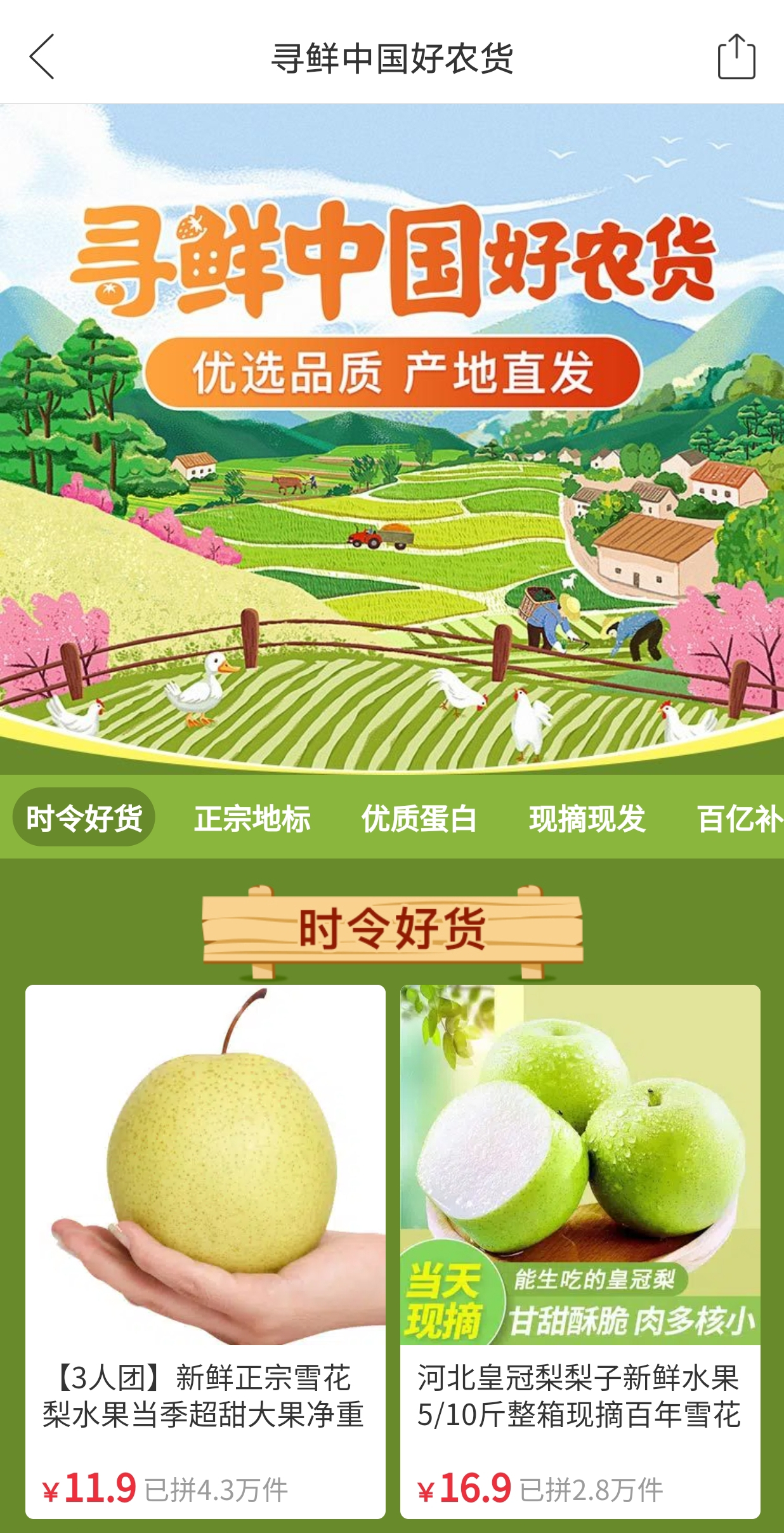活動期間,消費者打開拼多多app,搜索“尋鮮中國”“多多好農(nóng)貨”“好農(nóng)貨”等關(guān)鍵詞,即可直達(dá)專區(qū),選購時令地標(biāo)農(nóng)貨。