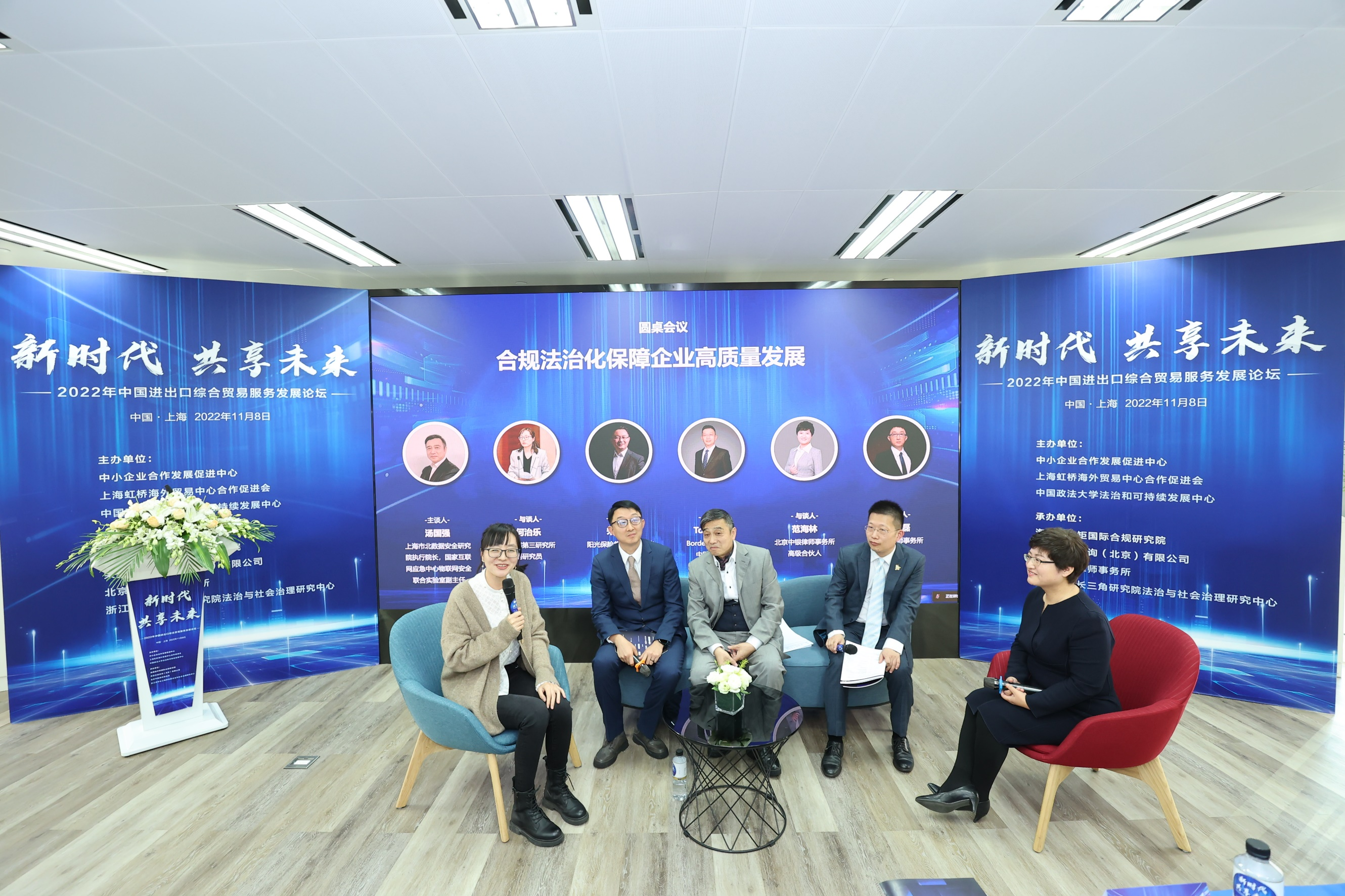 2022年11月8日,由中小企業(yè)合作發(fā)展促進(jìn)中心、上海虹橋海外貿(mào)易中心合作促進(jìn)會(huì)、中國政法大學(xué)法治與可持續(xù)發(fā)展中心共同主辦的“2022年中國進(jìn)出口綜合貿(mào)易服務(wù)發(fā)展論壇”在上海虹橋海外貿(mào)易中心隆重舉行,政府領(lǐng)導(dǎo)、專家學(xué)者、企業(yè)代表共同探討綜合貿(mào)易服務(wù)變化及貿(mào)易合規(guī)挑戰(zhàn)。