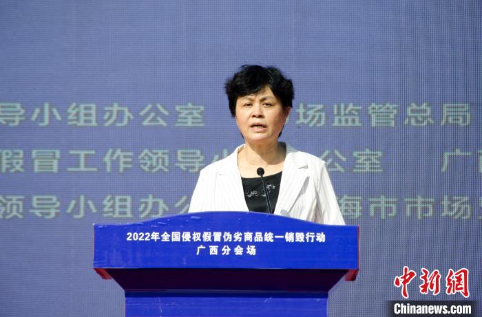 全國(guó)打擊侵權(quán)假冒工作領(lǐng)導(dǎo)小組辦公室主任、國(guó)家市場(chǎng)監(jiān)管總局副局長(zhǎng)甘霖在北海參加銷毀活動(dòng)并講話